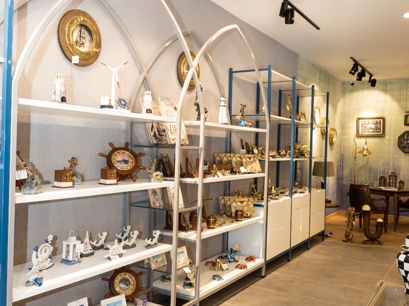 For sea lovers; Thousands of products prepared in 5 different categories such as marine and maritime products, vintage, souvenirs, ship-breaking products, mythological products and paintings are carefully collected from 20 different countries, preserved under suitable conditions, and offered to our customers with Maritime Goods quality at the Kusadasi Central Branch.