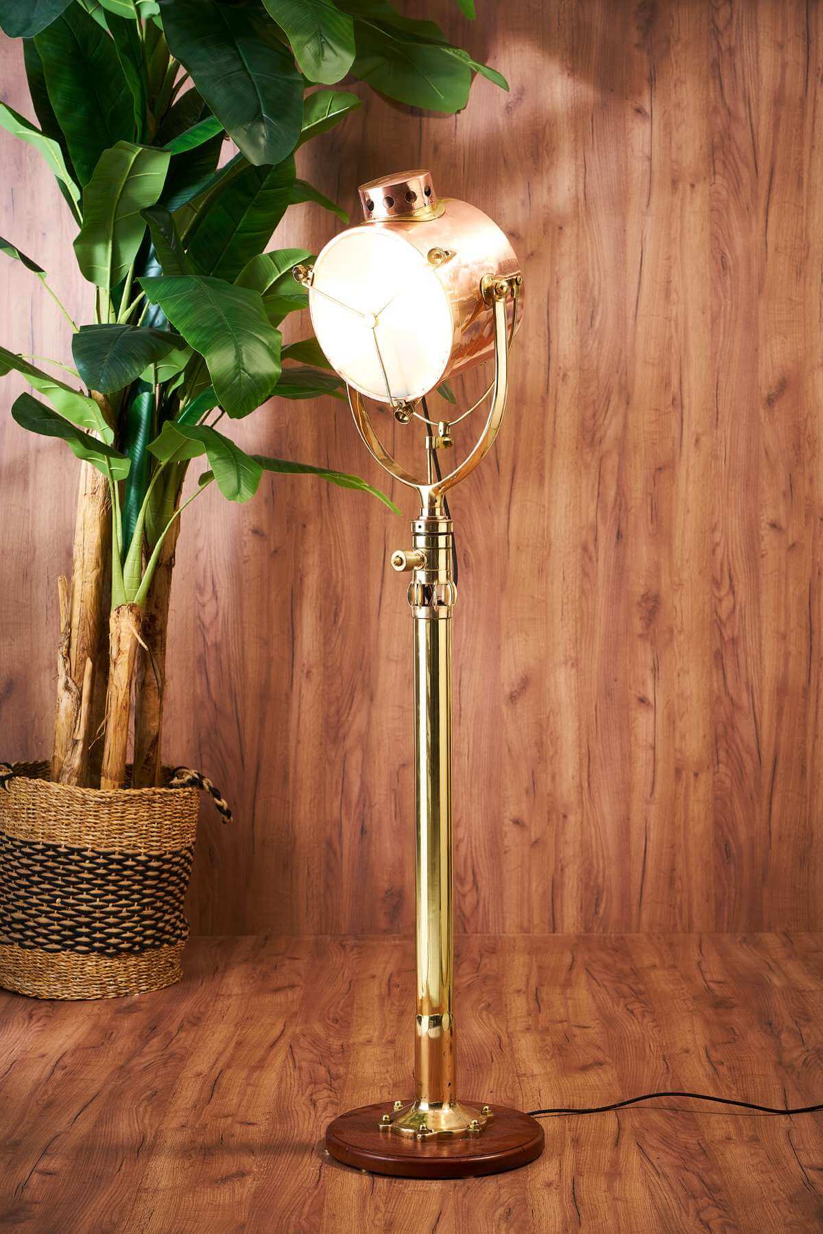 Ship projectors are used for illumination on ships. The large projector is the navigational projector of a 1945 model ship. The pulley to which the projector was attached was dismantled during the Aliağa ship dismantling in 1986 and was made from the capstan lining pulley of the military mine sweeping ship. The part used as a stand was removed from the American military ship. The part used as the base of the fire extinguisher was formed with the fire wildcard piston head of the pump. The specially designed projector has gained meaning with the 1936 bell model. The product consists entirely of gold color. At the same time, the large projector, which you can easily use for home decoration or office decoration, will add a different atmosphere to the space with its historical texture. You can present the large projector, which is also very meaningful for antique and special design gift lovers, to your loved ones. You can find antique and special design products that offer you the historical texture from Nautica Goods.