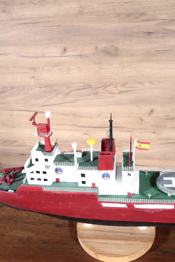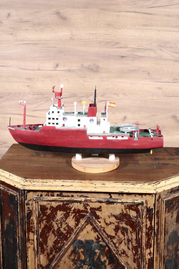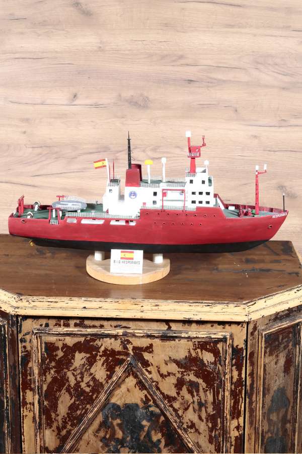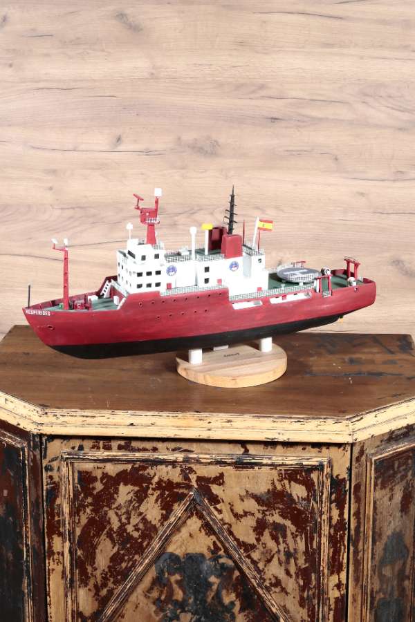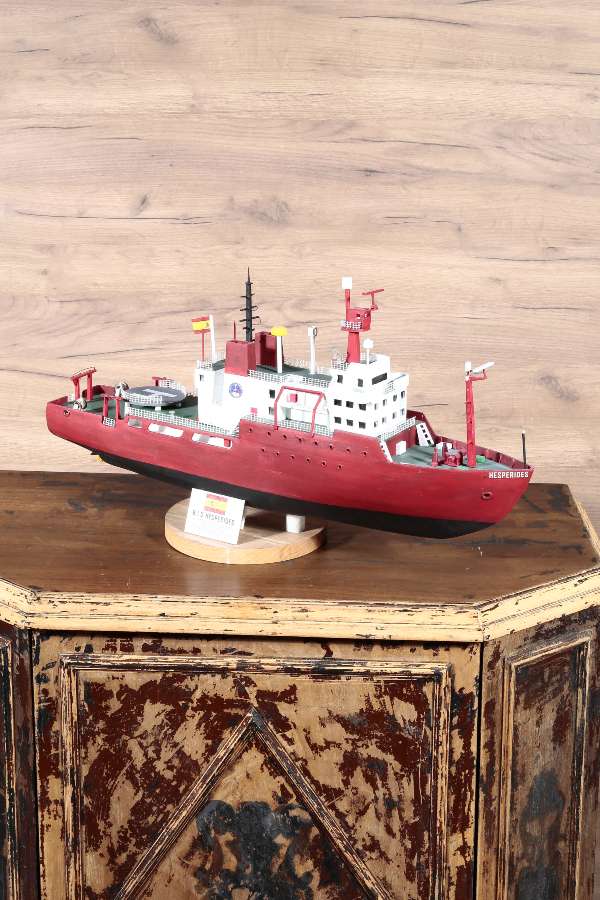 The BIO Hesperides ship model, with its wide red hull and detailed design, is an eye-catching ship model that should take its place in collectors' collections. The BIO Hesperides ship model, which is ready to take its place in home decoration, office decoration and tabletop decorations with its wooden tabletop support, is offered to sea lovers with its Nautica Goods quality.