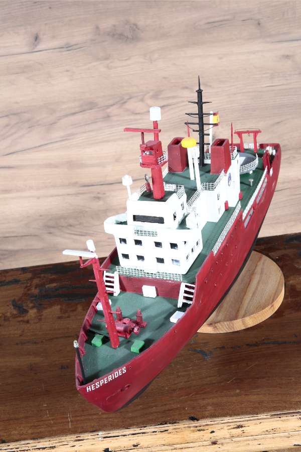 BIO Hesperides ship; It can move on ice up to 0.5 meters at a speed of 5 knots. The propulsion system uses a computer-controlled variable pitch propeller and stern and bow propellers. The ship also carries a helicopter.