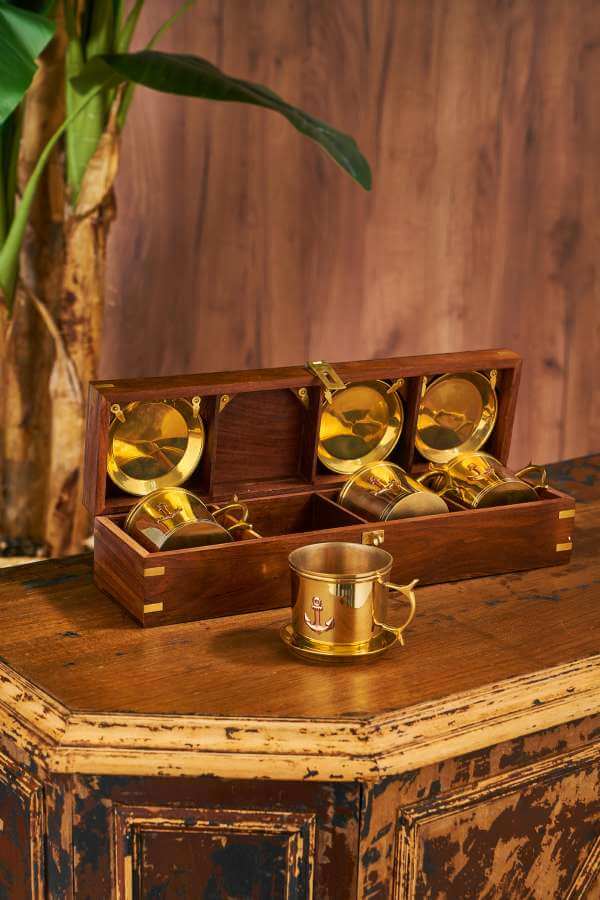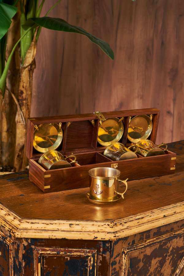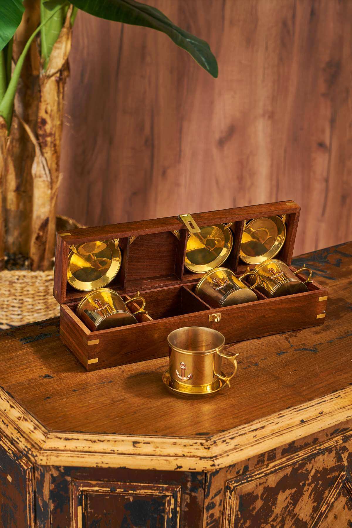 They say a cup of coffee is worth forty years. The presentation of the coffee is also important. If you prefer a special presentation, you can use a special cup set in your coffee presentation. The brass quartet cup set in a wooden box, made entirely of brass, awaits you to accompany your loved ones in the conversations that have been remembered for forty years. With its special wooden box, you can easily store and use it for many years. Brass 4-piece cup set in a wooden box, a special set that you can easily use in your home or office. The cup set, whose box is made of walnut, can be carried easily thanks to its locked structure. It contains four cups made of brass material and four saucers. A special compartment is made for each cup. The cup set, which is also very special in decorative terms, is ideal for those who prefer special pieces in their coffee presentations. The brass 4-piece cup set in a wooden box, which you can present to your loved ones, is a specially designed product. You can present the brass quartet cup set in a wooden box, which is also very meaningful for special gift lovers, to your loved ones. You can find products prepared for wood and special product enthusiasts from Nautica Goods.