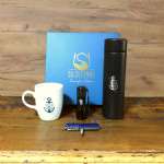 The Captain's Ship Package is ready to make your loved ones happy with its porcelain sailor mug glass, 9 LED-lighted battery-powered flashlights, 7-function multi-purpose pocketknife and a sailor's thermos that displays the temperature of the liquid in its very stylish box.