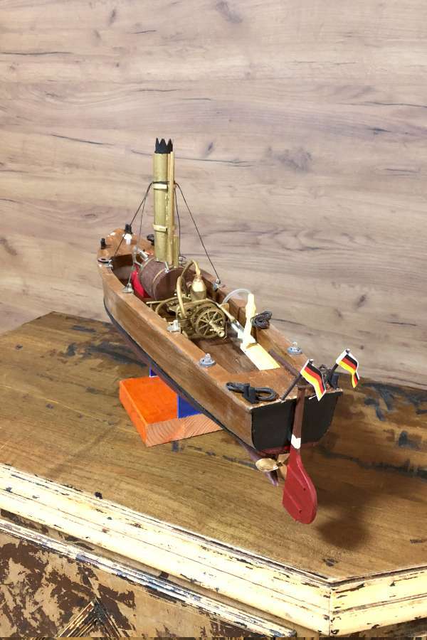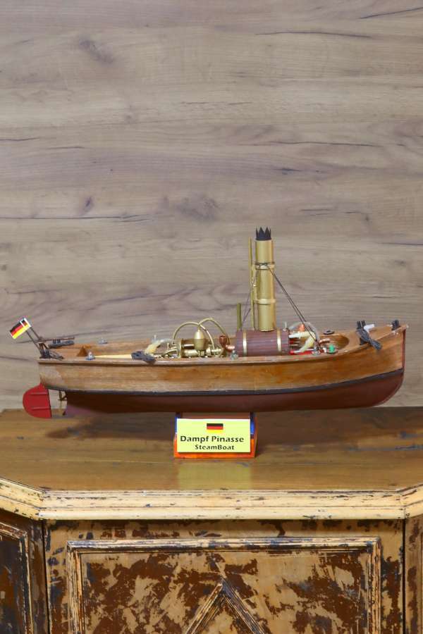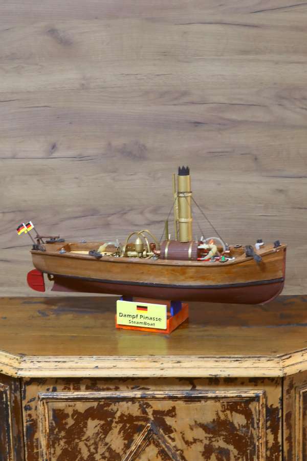 Dampf Pinasse Steamship Model, which is ready to take its place in the ship model collections of sea lovers, is presented to model ship collectors with its On Water quality.