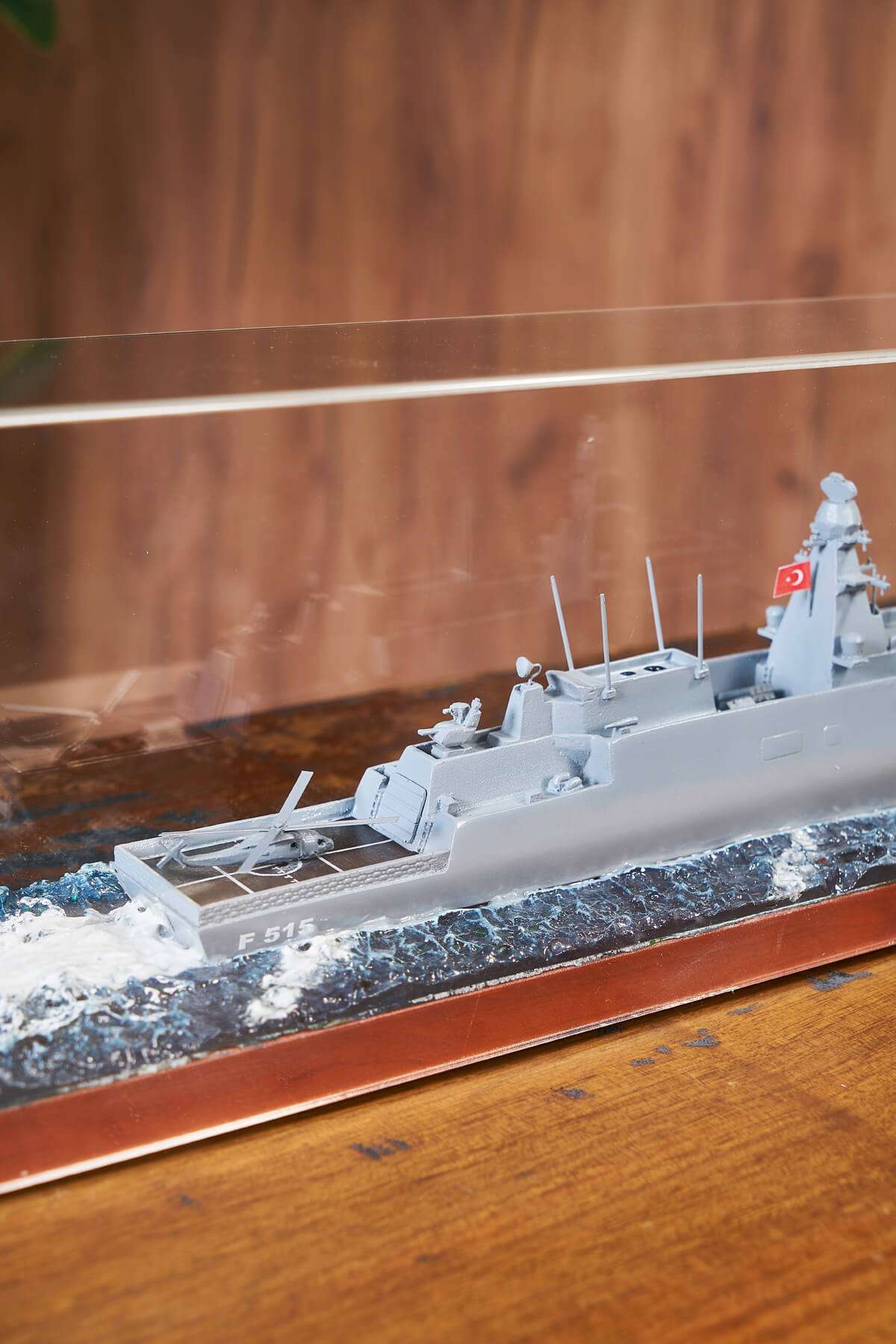 Product Care: The model of the helicopter warship on the waves made of walnut wood, the frame of the outer lower part is in its special transparent plastic box. For this reason, it is sufficient to clean the box. You can clean the box by wiping it with glass wiping water or a damp cloth. Avoid using cleaning products and harsh materials that can cause scratches. The product should be kept away from impacts.
