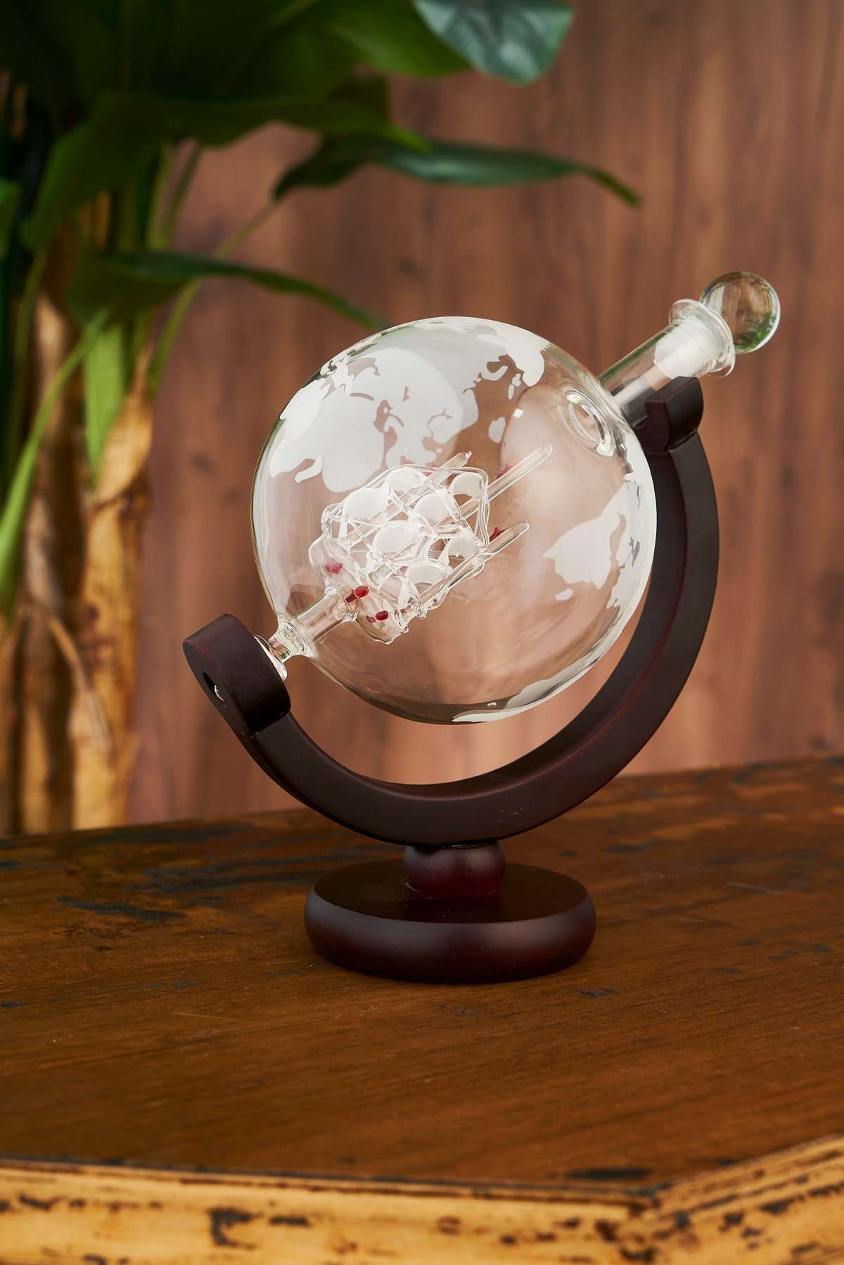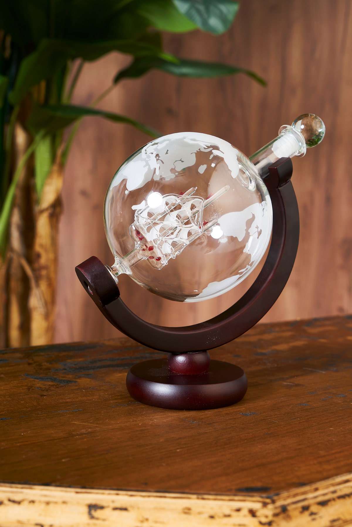 The world-shaped bottle with a glass ship figure inside, which can be used like an alcohol bottle, will add the air of the sea to your treats. The sailboat in a glass globe shaped bottle, which can be displaced and served as a beverage, will bring aesthetics to the time you spend with your friends.
