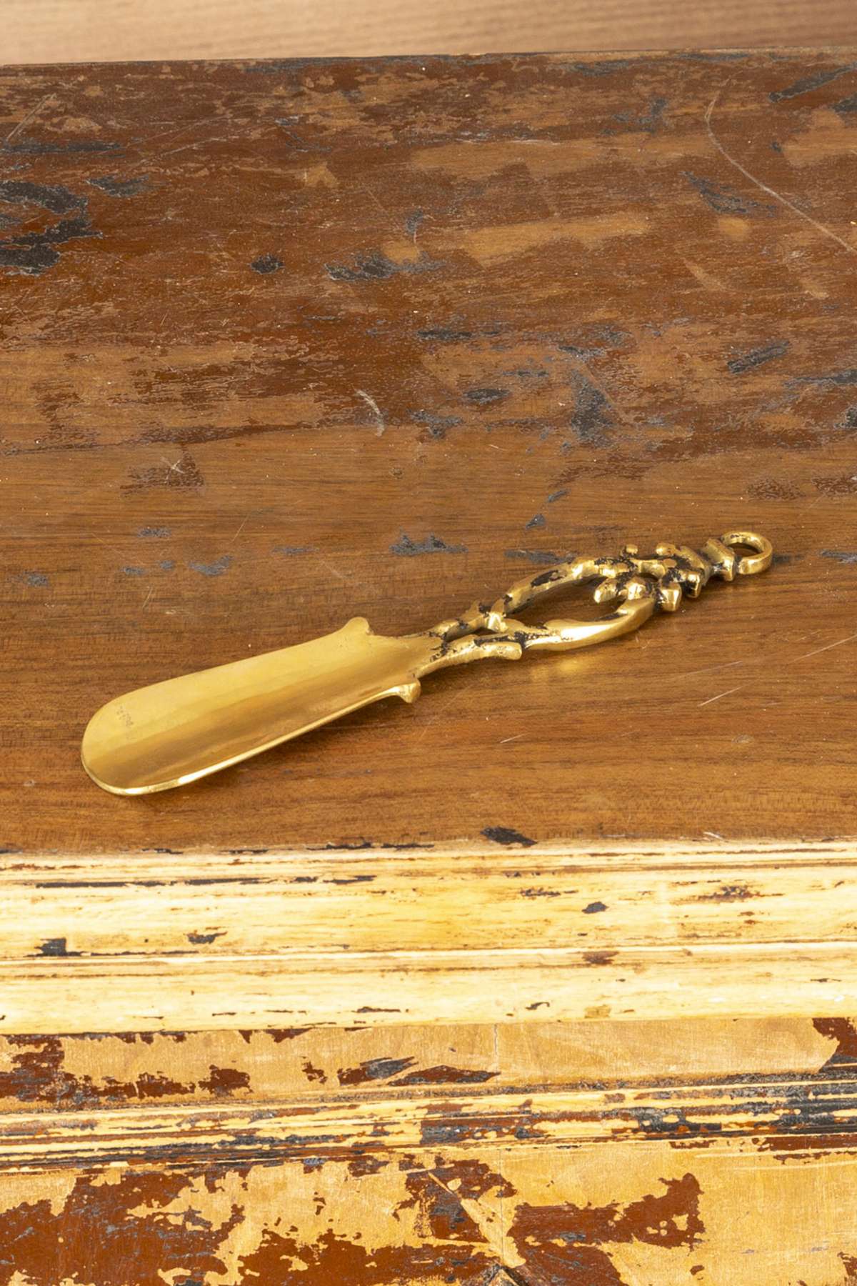 Shoe Horn is a product that is suitable for any area with a marine concept. Brass shoehorn is a handmade product created from the rudder figure that has become an important icon for sea lovers. The Short Shoehorn consists of a sailor knotted rope figure. The entire product is made of brass material. It is a very useful and concept-compatible product for your home or office.