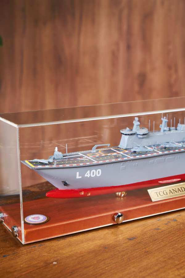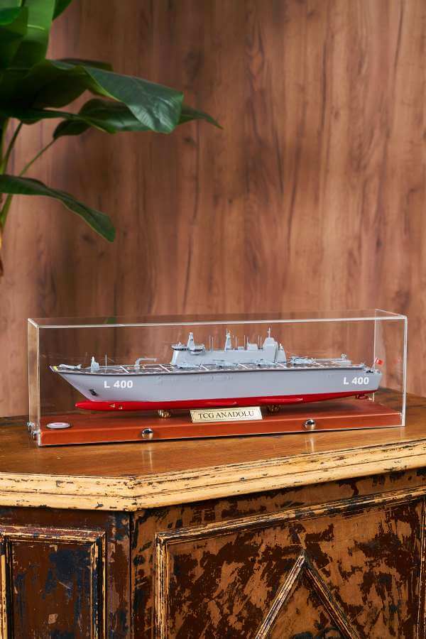 TCG Anadolu is the ship that has a great importance in the history of our country. It has the title of "Turkey's first ship in the class of amphibious assault ship". TCG Anadolu can be used in amphibious operations. Construction of the ship started in 2014. TCG Anadolu ship is capable of holding 8 helicopters. TCG Anadolu ship model, which has an important place in the history of our country, is ready to take its place in the collection of model lovers. TCG Anadolu ship model, made of wood and plastic material, is prepared with a plastic box with a wooden lower frame. TCG Anatolian ship model has a special place in model works. The TCG Anatolian ship model is a model ship with every detail elaborated in detail. The ship model was prepared in gray. Every detail of the TCG Anadolu ship model has been meticulously made. It is resistant to external factors thanks to its special transparent box. TCG Anatolian ship model is also a special product as a gift. You can add a different atmosphere to the space with the model, which is very special for home decoration and office decoration. The TCG Anatolian ship model will also be included in a special section of the model collection for beginners. The TCG Anadolu ship, which has a gray color, is a specially handmade product. You can find models of ships prepared for sea lovers on Nautica Goods.