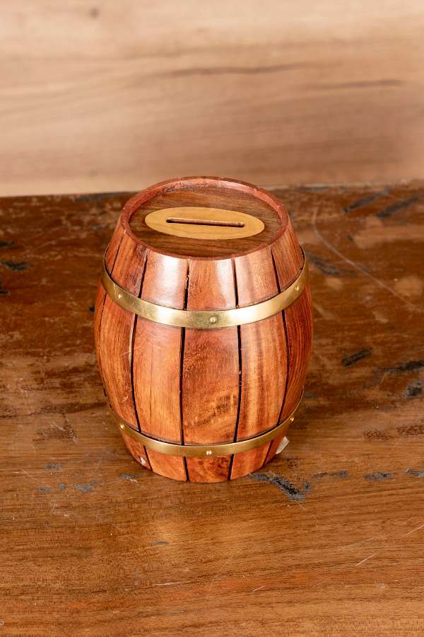 Product Care: You can wipe the wooden barrel piggy bank made of wood material with a wood cleaner to maintain its bright appearance. Avoid using cleaning products that can cause scratches. The product should be kept away from impacts.