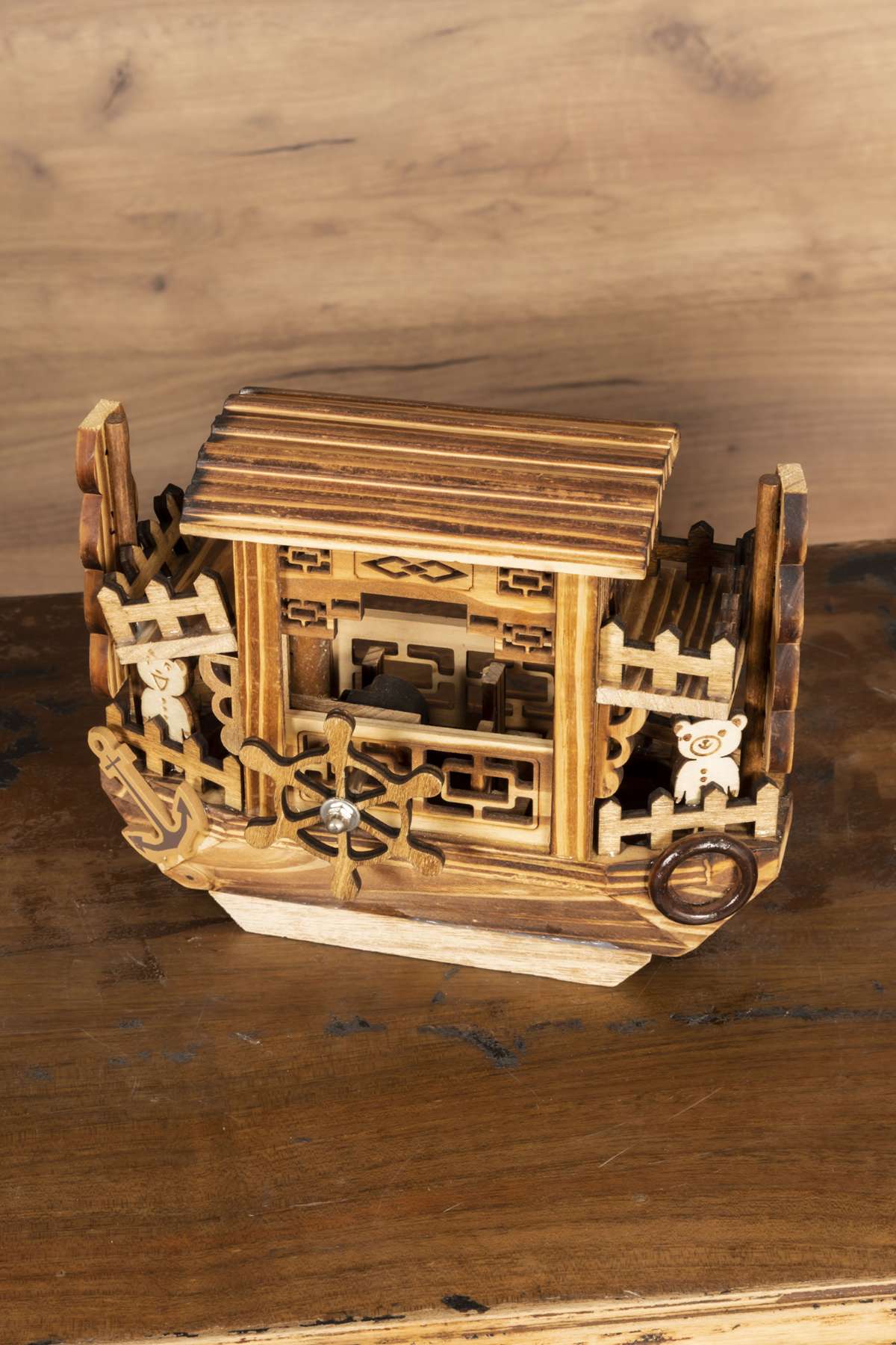 Product Care: You can protect the bright appearance of the Wooden Ship Model with Music Box, which is made of wood material, by wiping it with a wood cleaner. Avoid using cleaning products that can cause scratches. The product should be kept away from impacts.